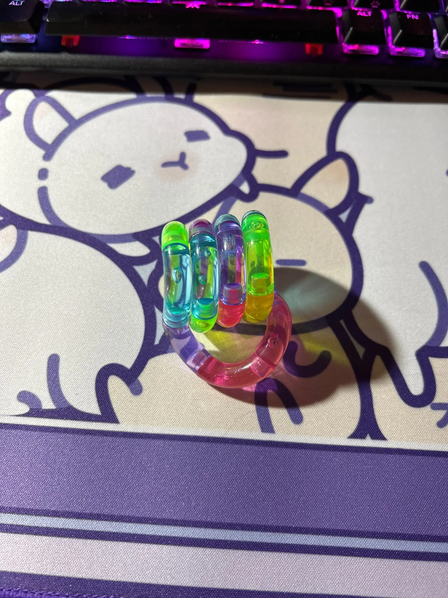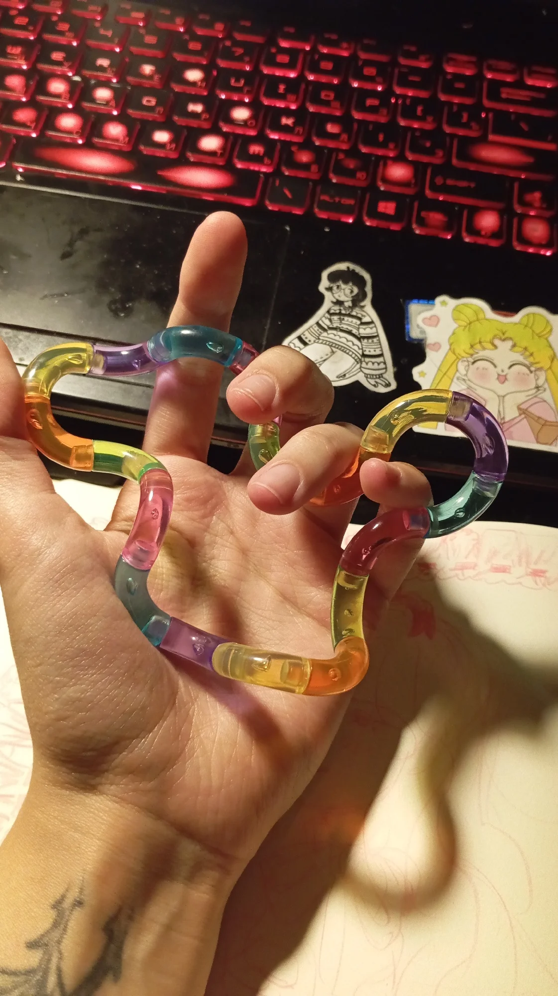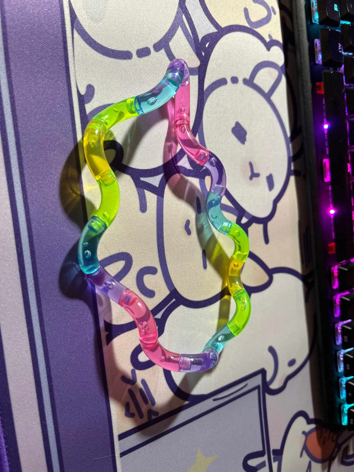 Com design deformável e cores vibrantes, ela pode ser dobrada, torcida e moldada em diferentes formas, estimulando o foco, a coordenação e a autorregulação sensorial. Um fidget simples, silencioso e perfeito para pausas no dia a dia — em casa, na escola ou no trabalho.